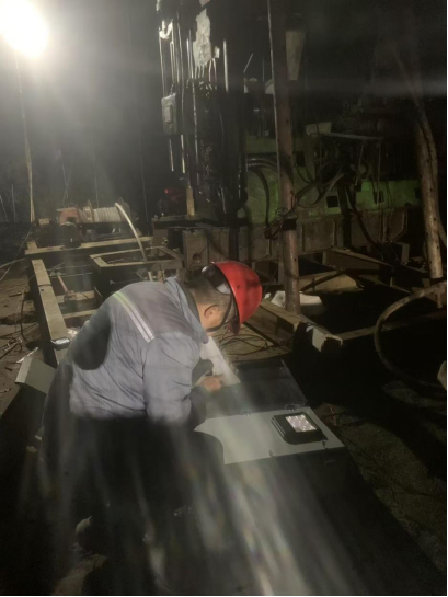 目前,项目部5名工作人员已连续多日无休上山作业,在保障钻孔编录进度的同时开展水文孔抽水试验(图4),以获取精准的地质信息数据。尽管元旦期间雨水量增多、气温严寒,泥泞的山路阻碍了车辆通行,但项目组的“小伙子们”始终秉持“安全为盾,质量可靠”的原则,全力确保项目高质量推进。公司将进一步加大技术投入力度,力争于1月底通过野外工作验收并提交初步成果报告。
