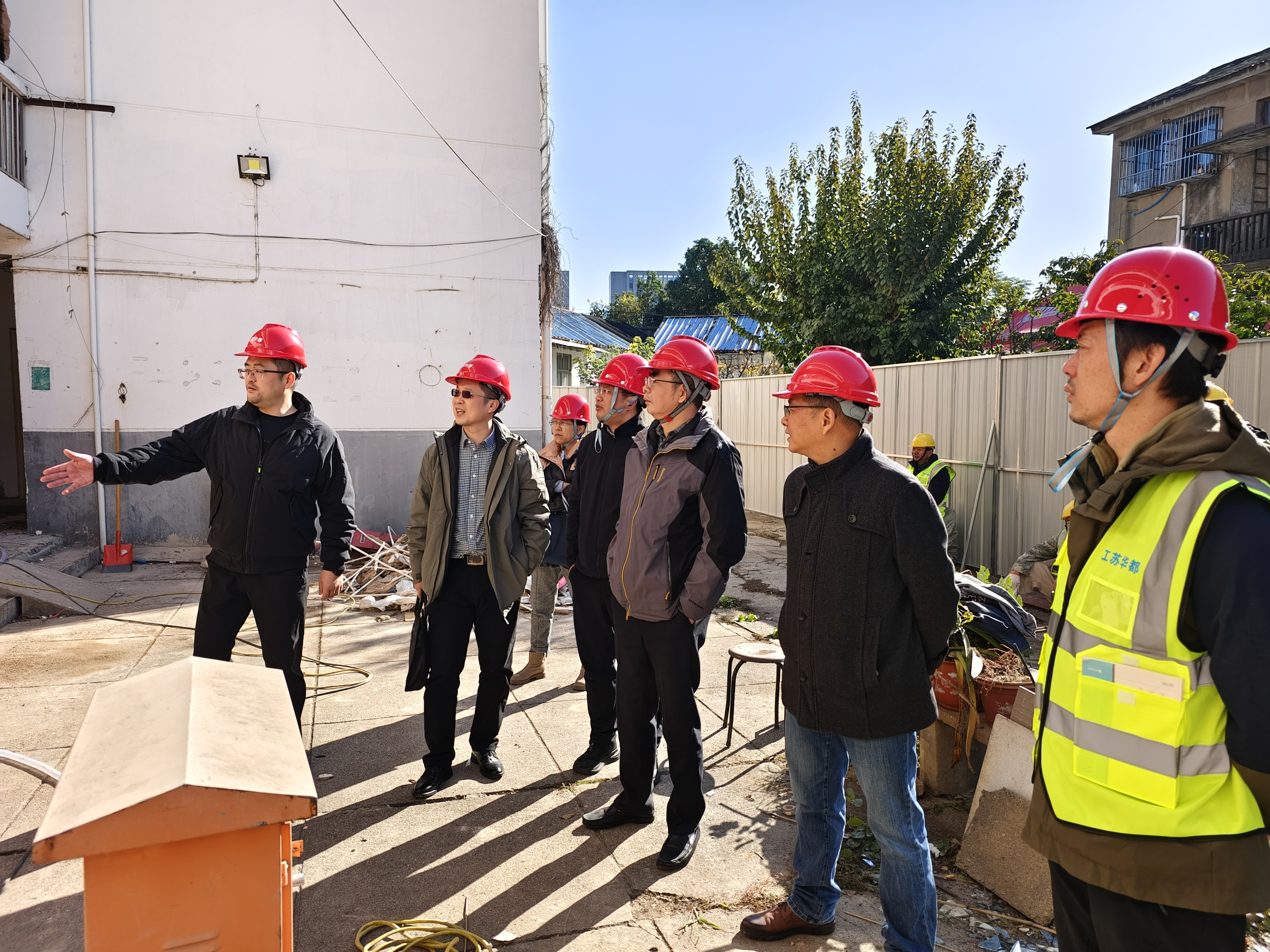 江宁929基地和芙阁路88号危房加固施工项目位于南京市江宁区天印大道,主要涉及原有食堂、住宅楼、浴室、办公用房等老旧房屋的加固和改造。检查中,双方领导对项目工程概况、施工进度、安全生产等情况进行了详细的了解,并对施工整体的施工推进和现场安全管理进行了交流。