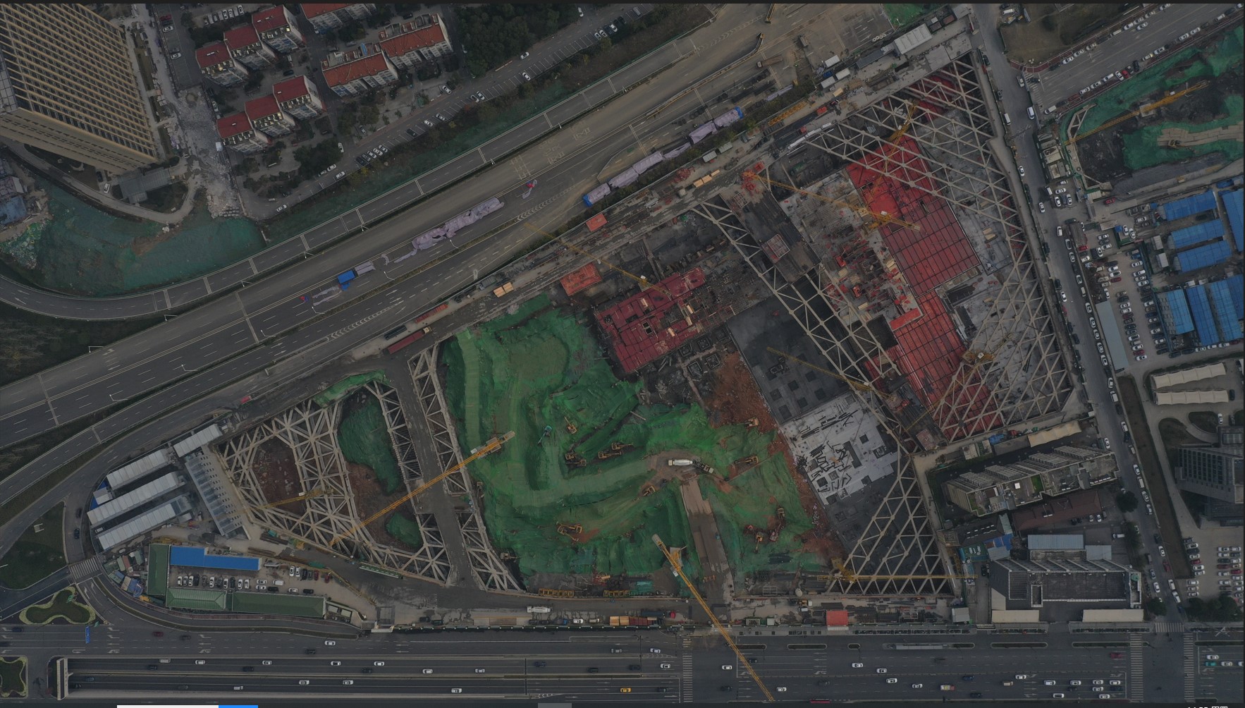 南京江北虹悦城(2018G11)地块项目位于南京市江北新区,占地面积3.07万m²,总建筑面积34.5万m²,整体由220m超高层主塔楼、115m精装公寓以及10万m²建筑面积的购物中心组成,设3层地下室,基坑总面积约54000m²,基坑周长约386m,基坑开挖深度15.00~18.00m。基坑工程设计方案采用中间盆式开挖、外围竖向围护结构+内支撑(1-2层钢筋混凝土支撑、1-3层钢管抛撑)体系顺作法施工技术方案,通过合理的工况安全设计控制,解决了不规则结构楼板在两侧不同支撑层数及差异较大土压力下的受力均衡问题,确保了周边环境的安全与稳定。该项目为长江漫滩地区首个采用盆式开挖设计的地下三层基坑工程,为国内类似项目的基坑工程提供了有益指导。