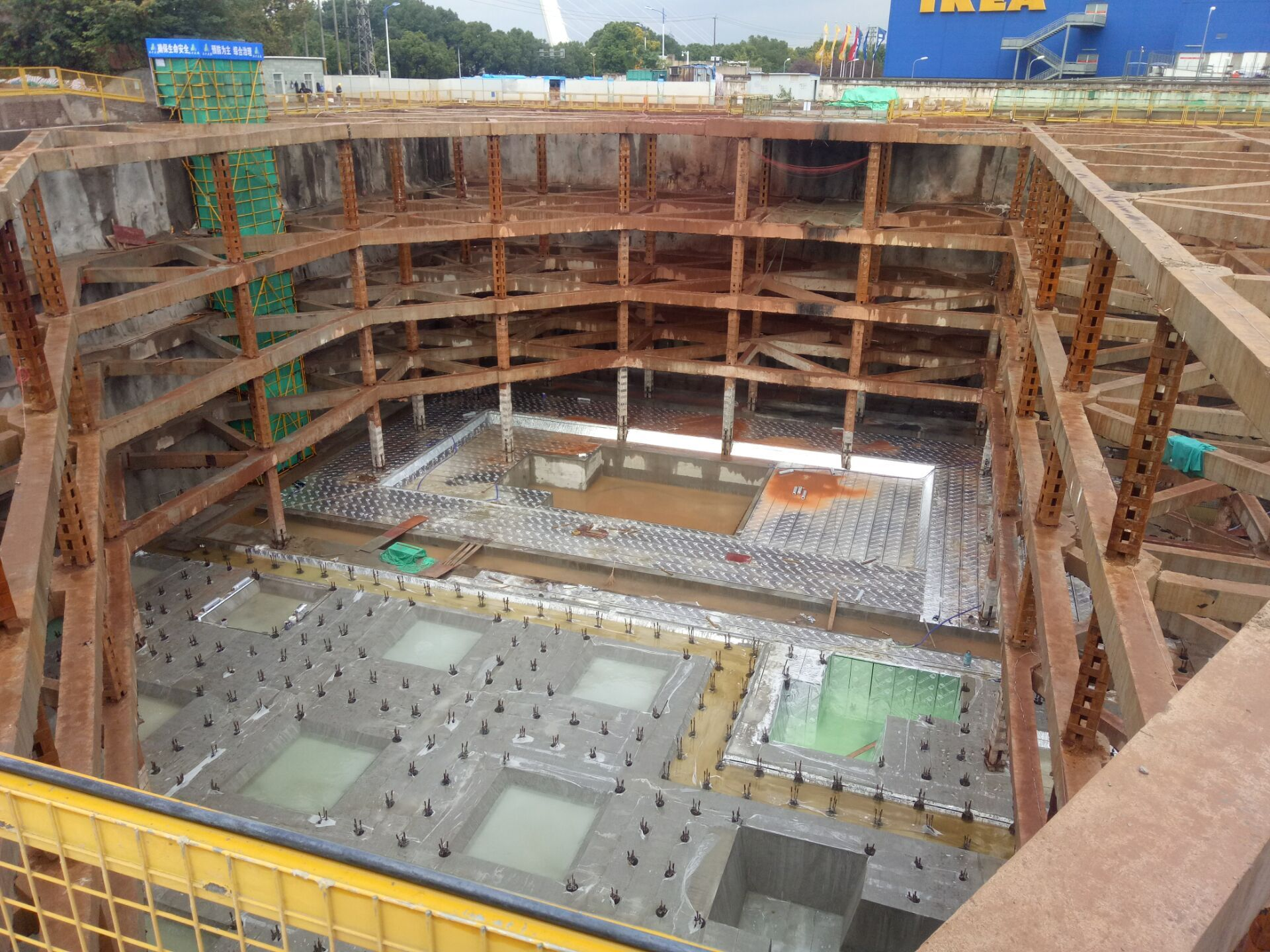 秦淮区宜家南侧地块位于位于南京市秦淮区卡子门大街与雨花东路交界处东侧,地下三、四层,基坑开挖深度15.25~23.45米,周长约840米,面积约33000平方米。