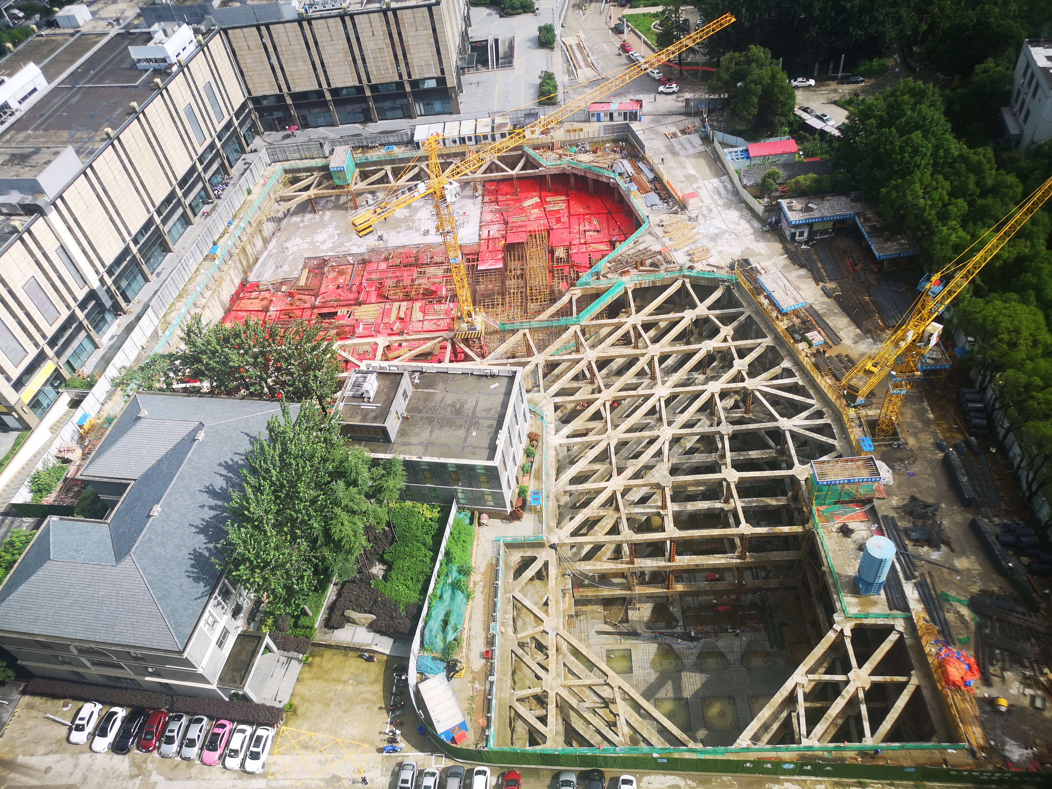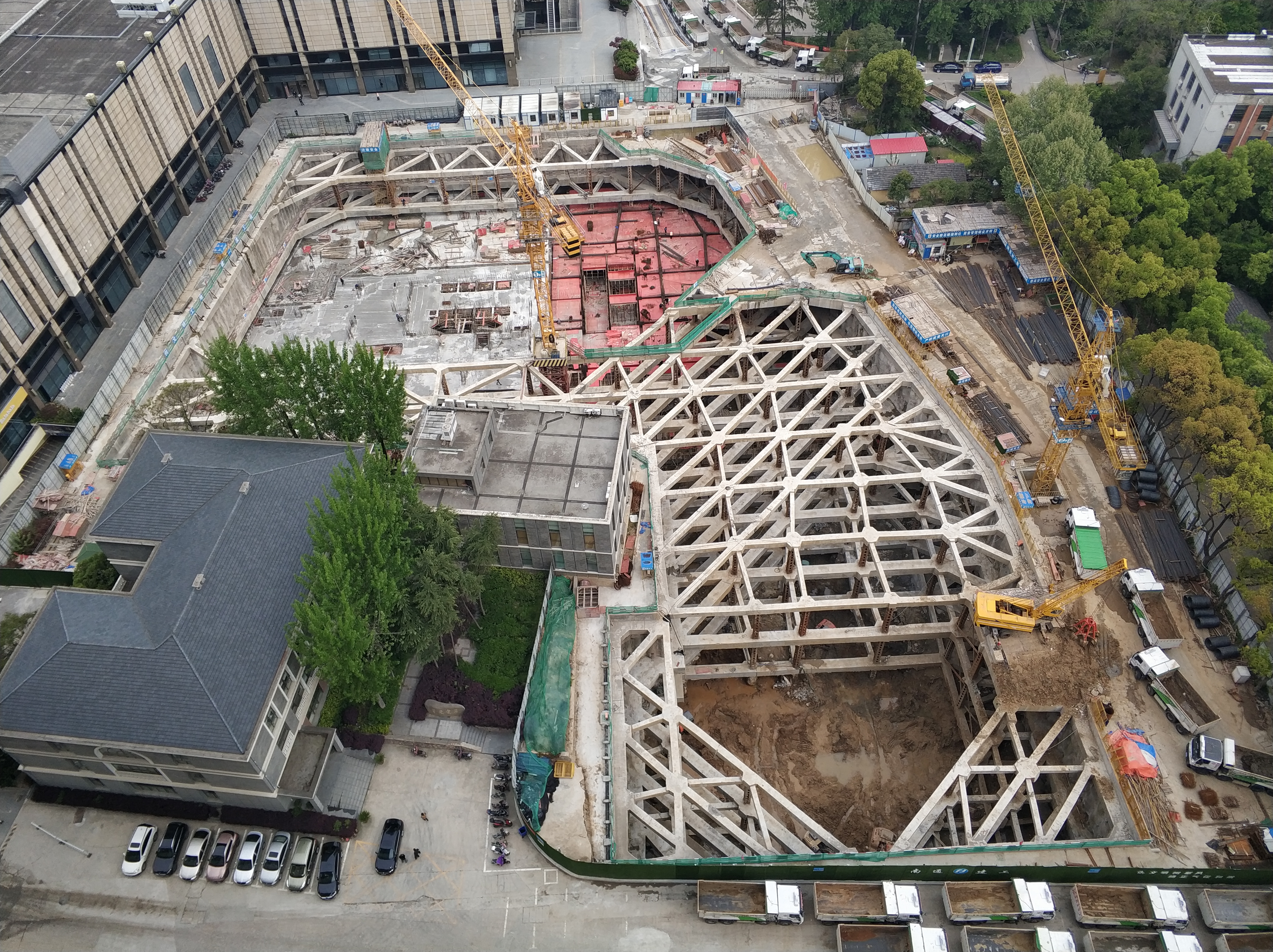 华电科技园01地块二期项目位于南京市栖霞区华电路1号,地库由三层地下室和六层地下机械车库组成,基坑开挖深度14.80~21.50米,周长约440米,面积约8300平方米。